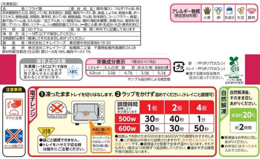 [冷凍]ニチレイ 紀州南高梅が香る 梅しそカツ 90g×12個 | 規格を見直しました。