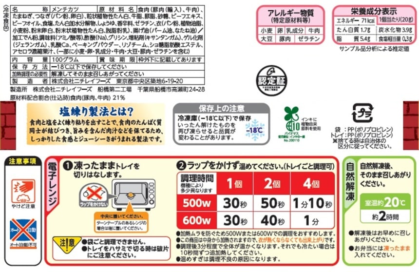 - [冷凍]ニチレイ お肉たっぷりジューシーメンチカツ 100g×12個