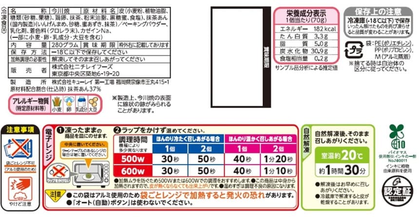 - [冷凍]ニチレイ 今川焼(宇治抹茶あん プレミアム) 280g×12個