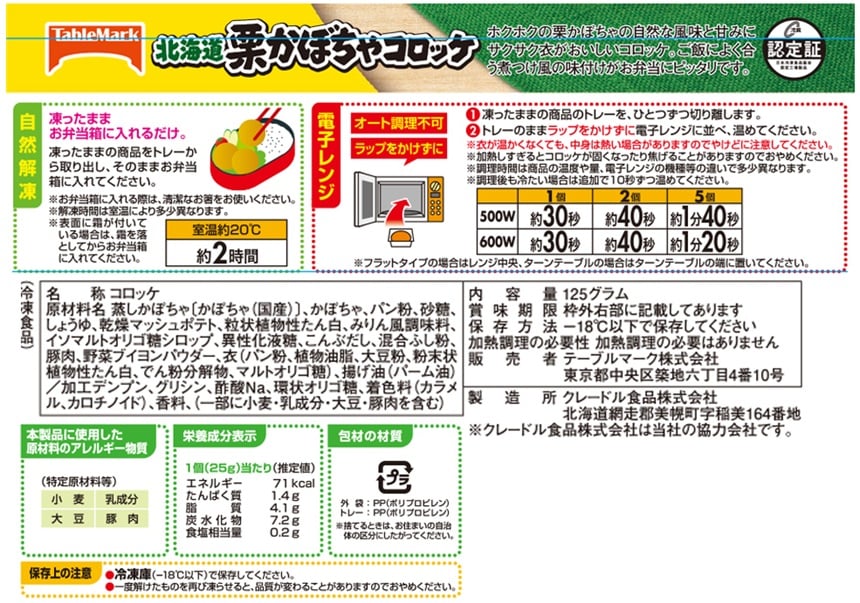 - [冷凍]テーブルマーク 北海道栗かぼちゃコロッケ 125g×12袋