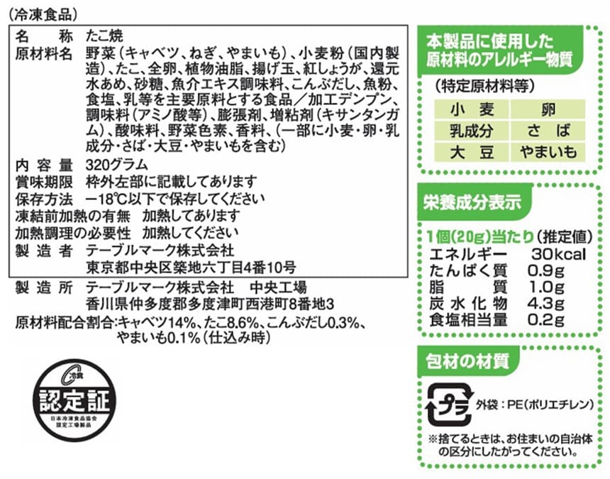 - [冷凍]テーブルマーク ごっつ旨いたこ焼16個入 320g×7袋