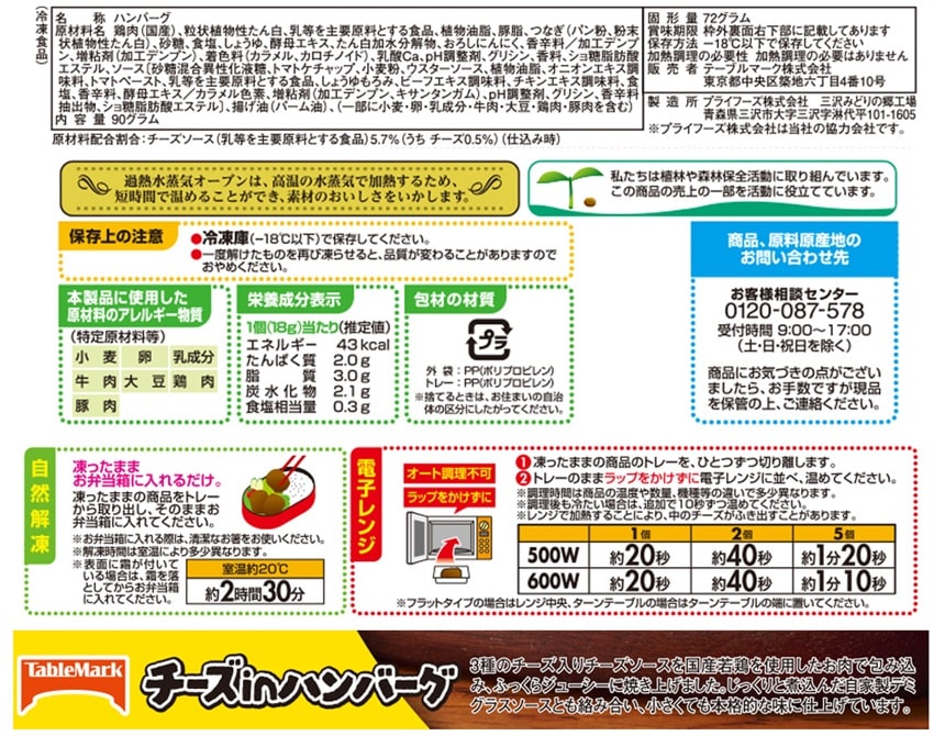 - [冷凍]テーブルマーク チーズinハンバーグ(ミニ) 90g×12袋