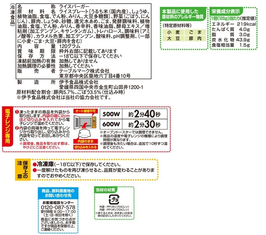 - [冷凍]テーブルマーク ライスバーガー きんぴら 120g×10袋