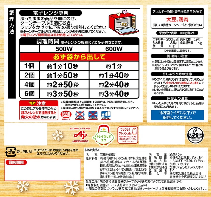 - [冷凍]味の素 レモンの塩だれから揚げ 250g×6袋