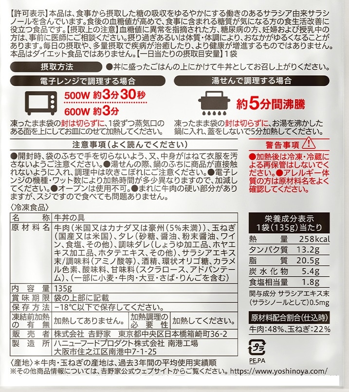 [冷凍]吉野家 トク牛 135g×10個 【特定保健用食品】 | 吉野家の牛丼の美味しさそのままに。