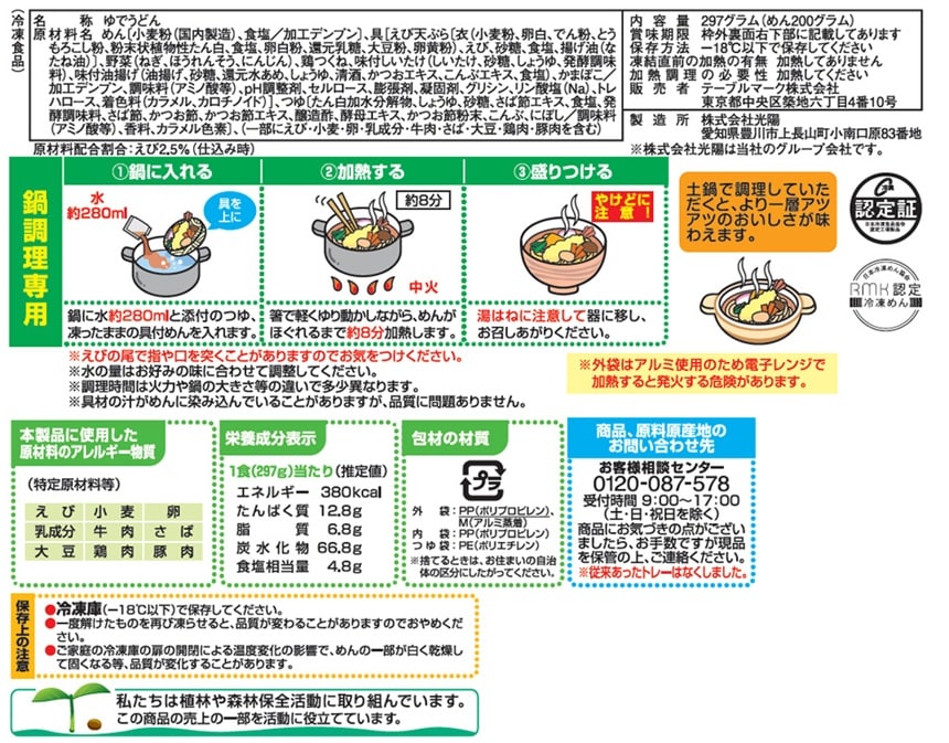 [冷凍]テーブルマーク 鍋焼えび天うどん 297g×14個 | 国産小麦を使用したうどんが自慢です。