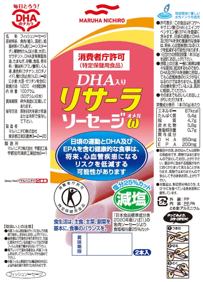 - 【特定保健用食品】DHA入り リサーラソーセージω(オメガ) 2本入