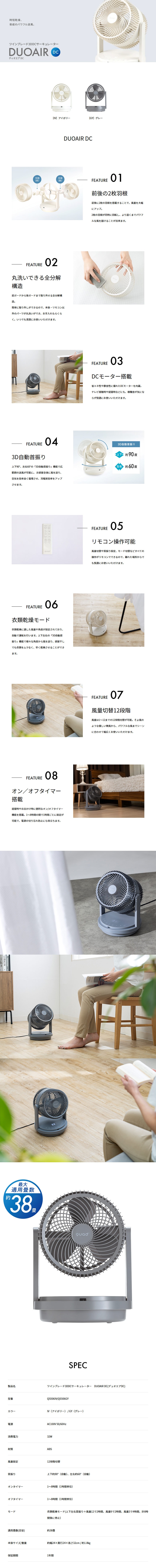 [グレー] クワッズ/ツインブレード3D DCサーキュレーター「デュオエアDC」(前後2枚羽根/衣類乾燥モード/12段階切替)|前後に2枚の羽根搭載!風量を大幅にアップ!時短乾燥、脅威のパワフル送風
