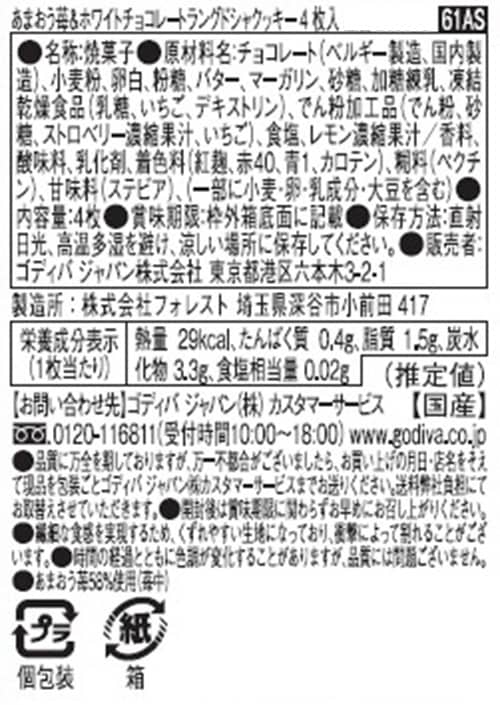 [5箱]ゴディバジャパン あまおう苺&ホワイトチョコレートラングドシャクッキー 4枚入
