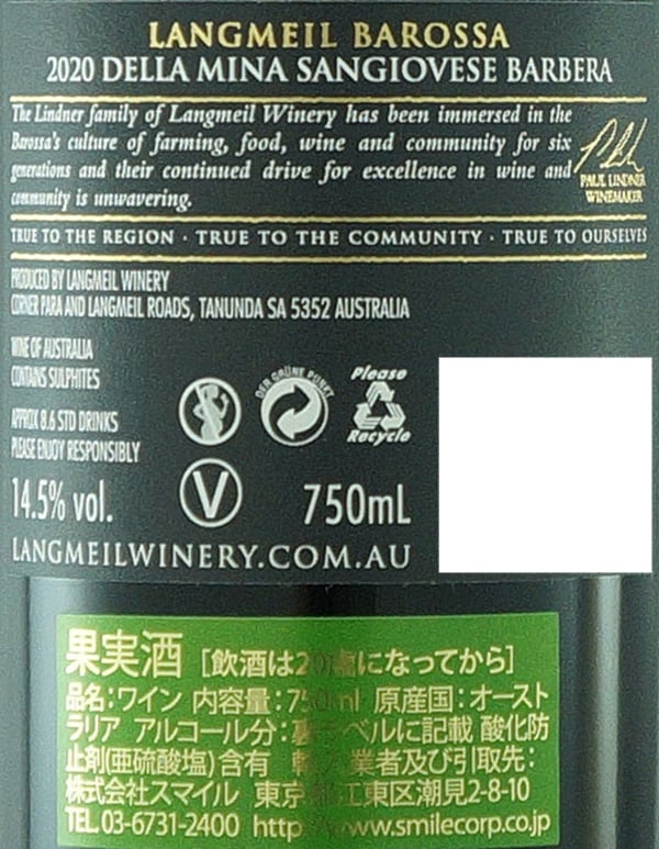 [12本]【体験コメント募集】スマイル ラングメイル サンジョベーゼ バルベーラ 750ml | バロッサの新たな挑戦、イタリア葡萄品種