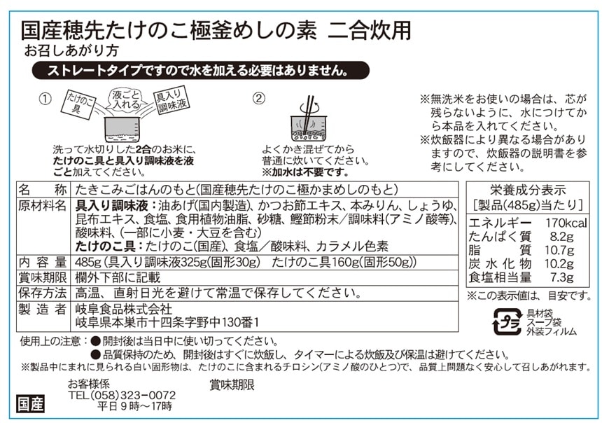・国産穂先たけのこ極釜めしの素 485g×6個