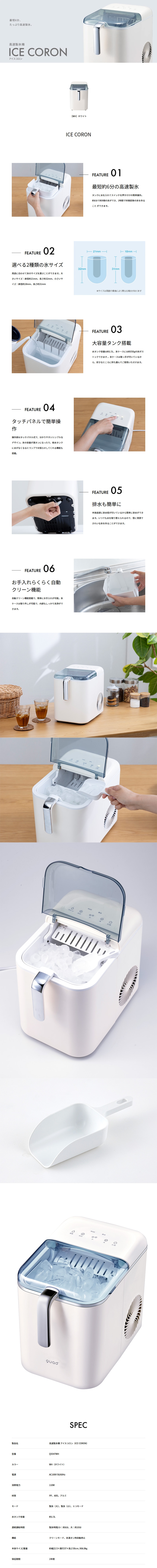 - QUADS(クワッズ)/高速製氷機「アイスコロン」(最短約6分の高速製氷/大容量タンク搭載/タッチパネル簡単操作/自動クリーン機能)/QS547WH