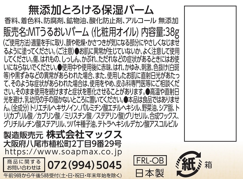 - 無添加とろける保湿バーム 38g