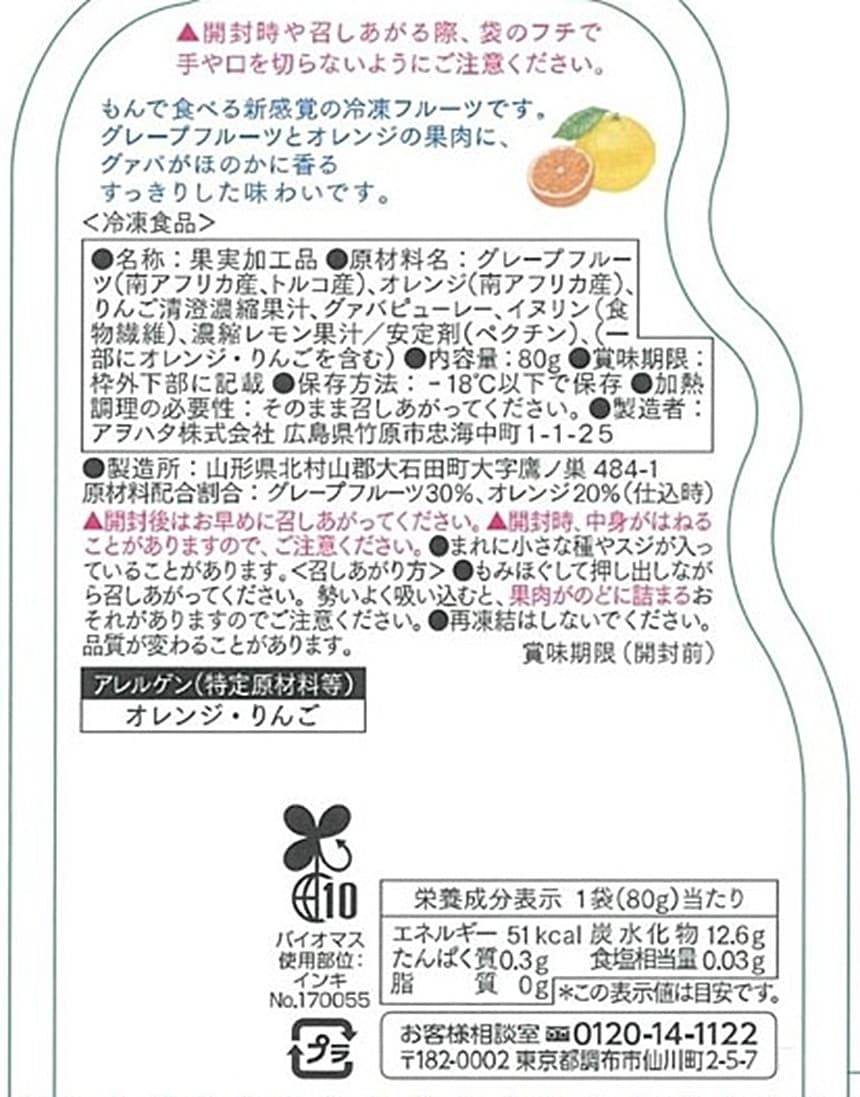 グレープフルーツとオレンジの果肉に、グァバがほのかに香るすっきりした味わいです。