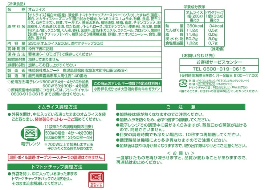 - [冷凍]【6食】ポムの樹のオムライス ポムオム 230g