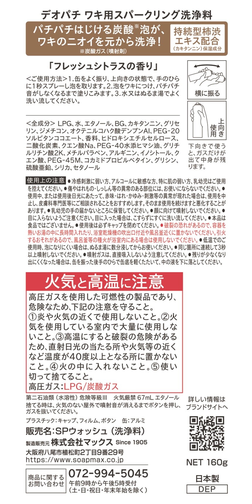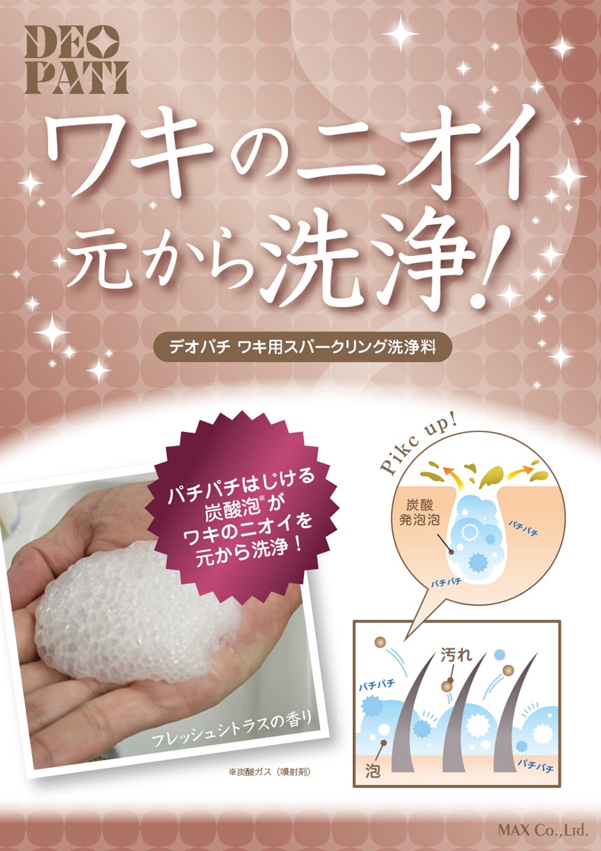 ・パチパチはじける炭酸(炭酸ガス:噴射剤)泡が、ワキのニオイを元から洗浄!炭酸の「発泡力」でニオイの元を洗浄します。