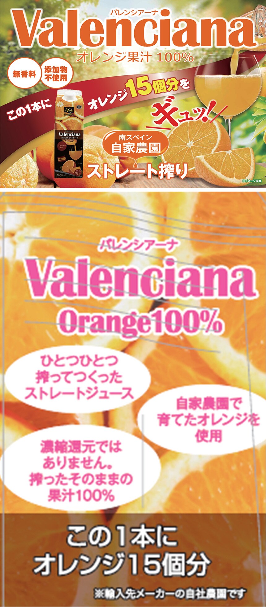 オレンジ15個分を使用した濃縮還元でないストレートオレンジジュースです。