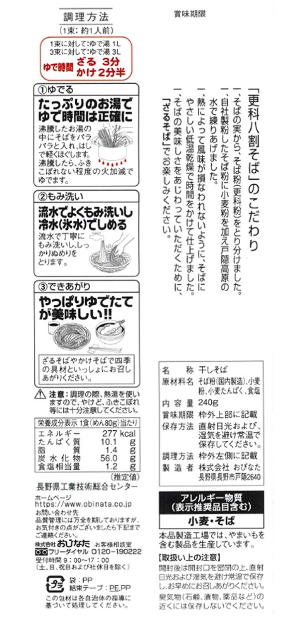 おびなた 蕎麦通の更科八割 240g×15袋 | おびなたは日本有数のそば処信州戸隠で、そばの製粉から製麺まで一貫製造しているそばの専門メーカーです。
