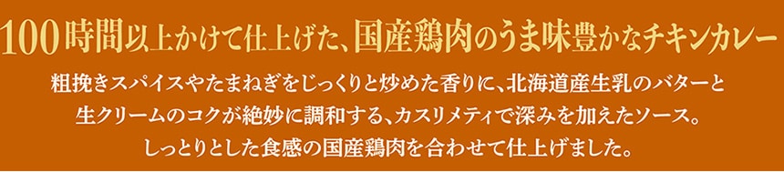 MCC 国産鶏肉の100時間かけたバターチキンカレー 165g×10箱 | 粗挽きスパイスや玉葱をじっくりと炒めた香りに北海道産生乳のバター生クリームのコクが絶妙に調和する。