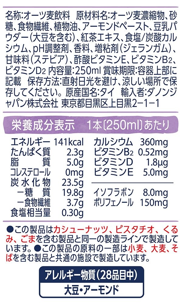 1本(250ml)で5つの栄養(ビタミンEイソフラボン食物繊維カルシウムビタミンB2”が摂ることができさらに紅茶由来のポリフェノールも摂取できます。