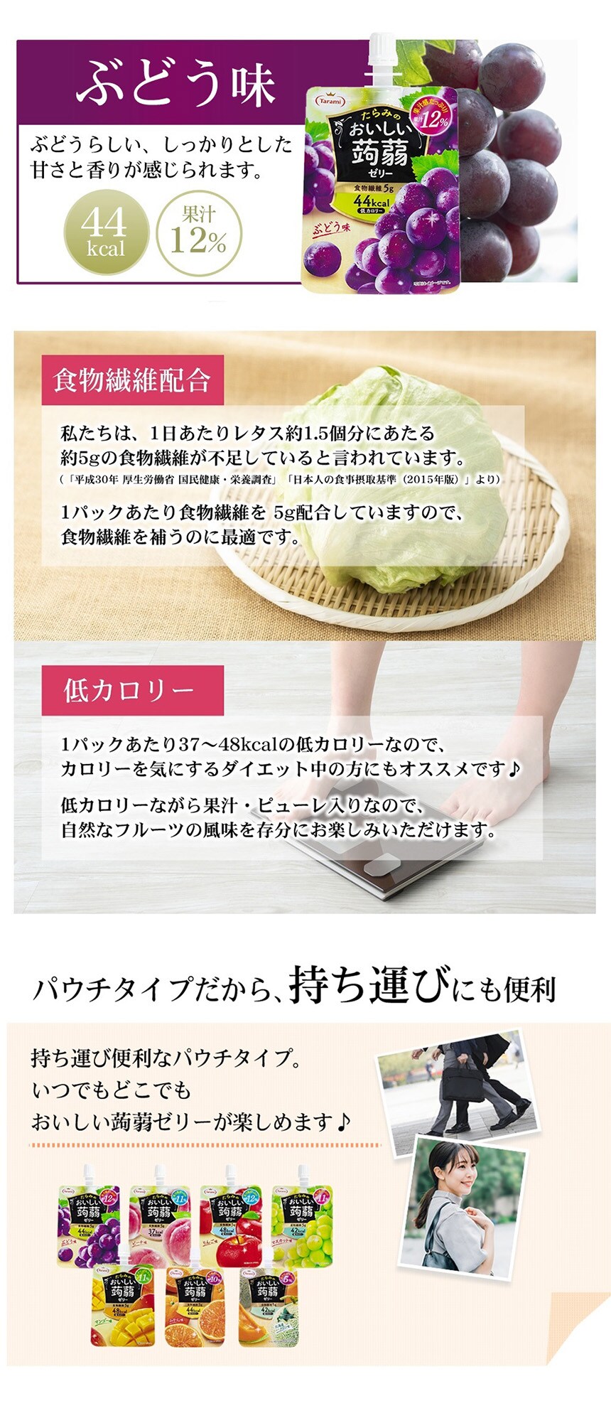 たらみ おいしい蒟蒻 ぶどう味 150g×30個 | 食物繊維5g入りで、低カロリーの44kcal。