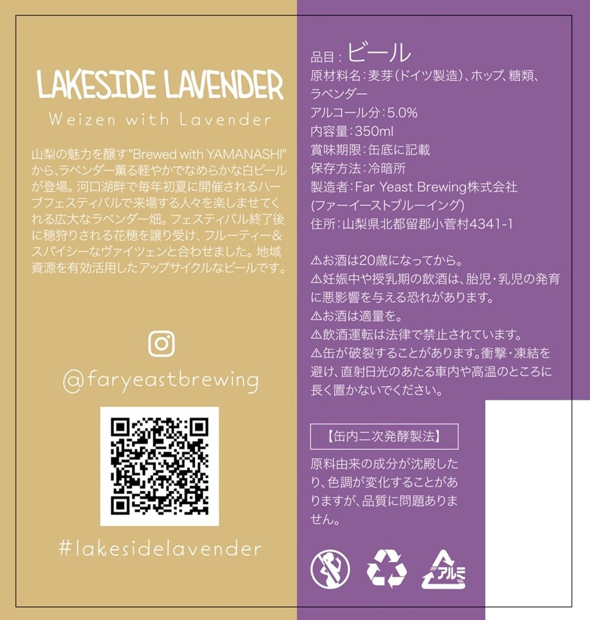 酵母が醸し出すフルーティーかつスパイシーなフレーバーと小麦のなめらかな口当たりに、ふんわり優しくラベンダーが薫る軽やかな味わいをお楽しみください。