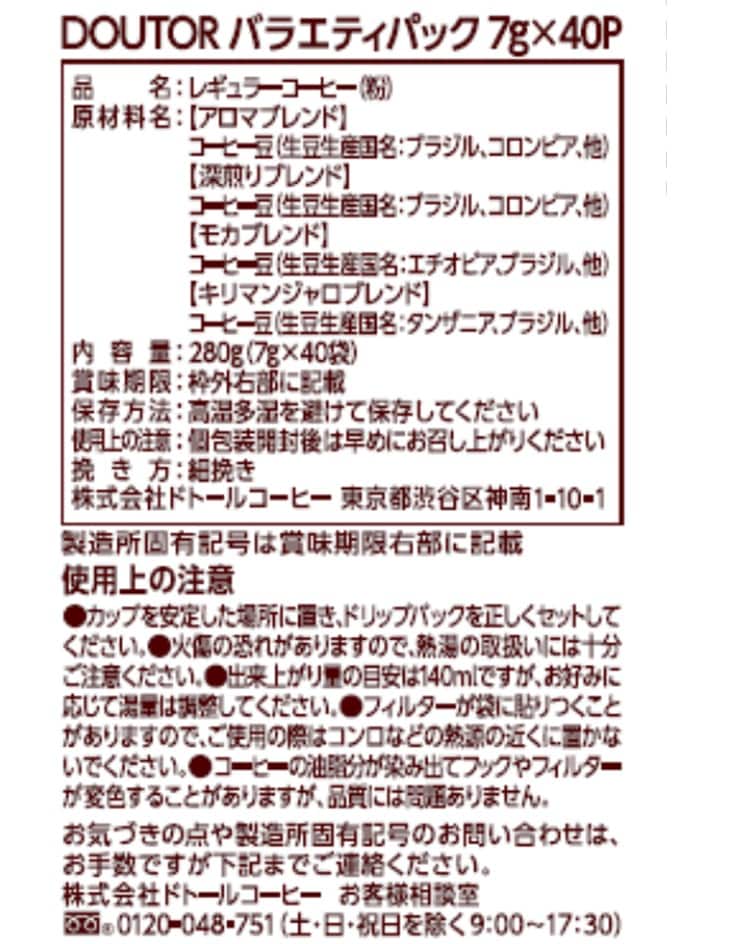 - ドトールコーヒー ドリップパックバラエティパック 40パック×3個