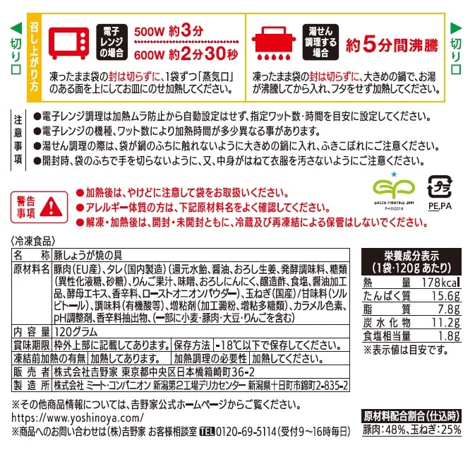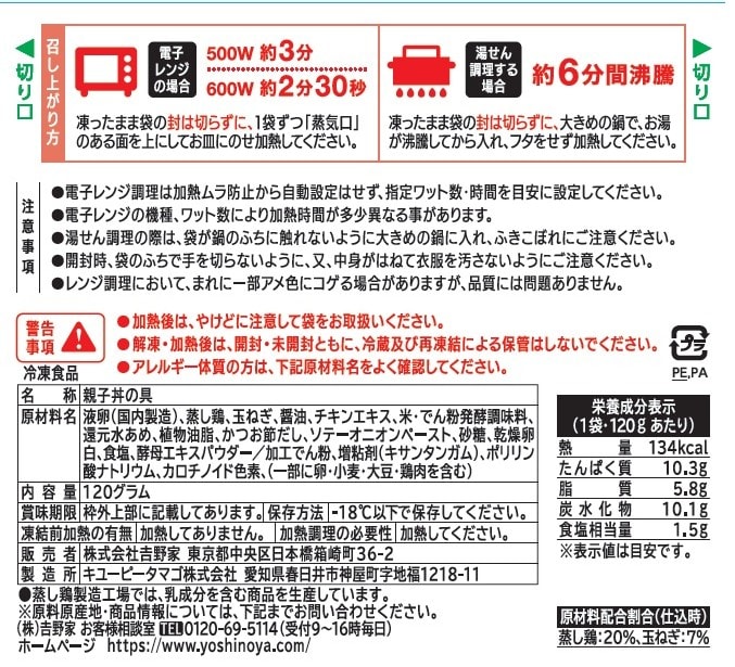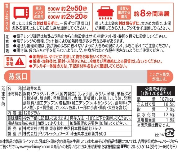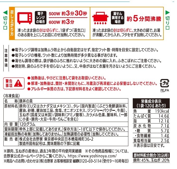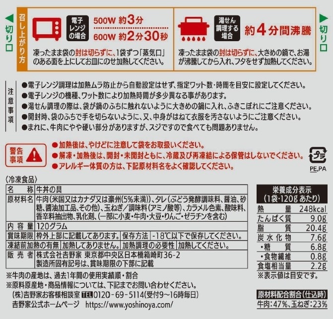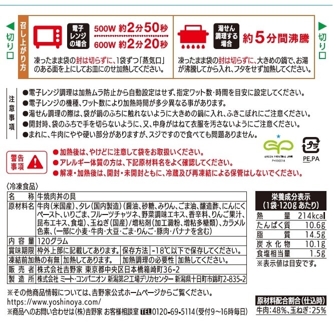 (3)冷凍商品オリジナルの吉野家の味がお楽しみいただけます。