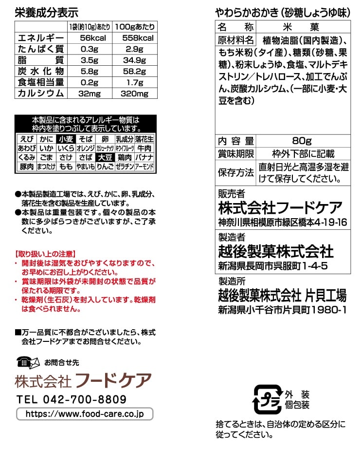 - フードケア やわらかおかき 砂糖しょうゆ味 80g×12個