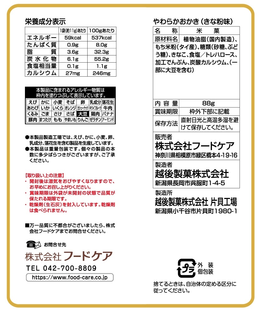 - フードケア やわらかおかき きな粉味 88g×6個