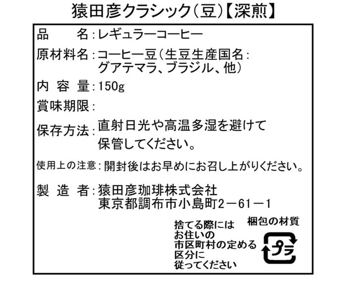 猿田彦珈琲 猿田彦クラシック(豆) 150g×10個 | 心地良いコクと甘み。
