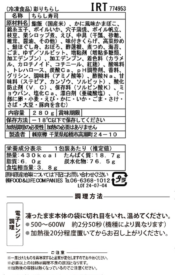 ・冷凍 彩りちらし 280g×1袋 - 申込可能個数