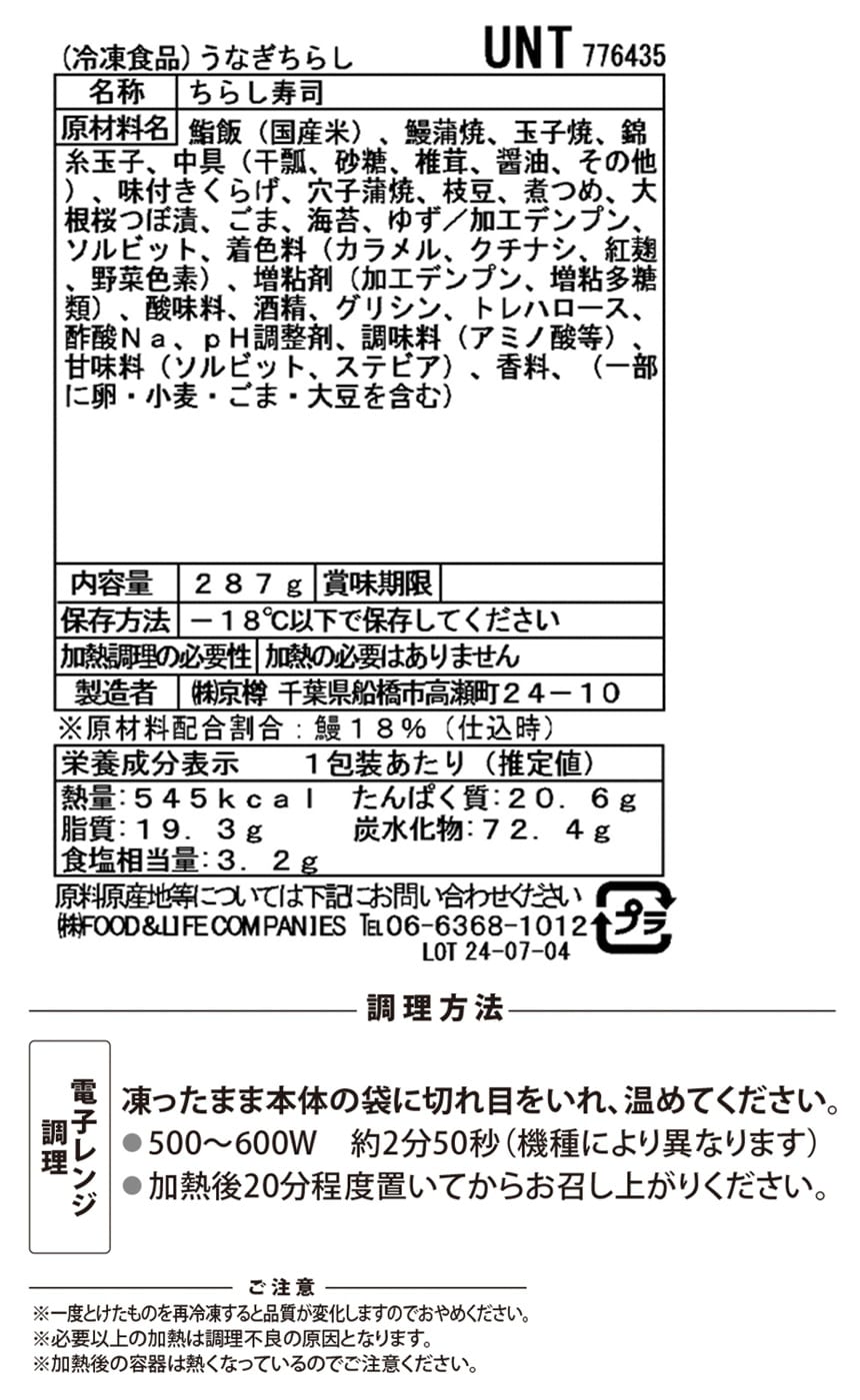 - [冷凍]【2種計3袋】京樽 うなぎちらし&姫茶きん鮨セット