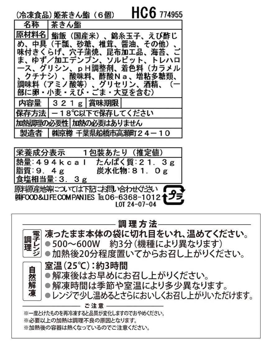 ・冷凍 姫茶きん鮨(6個) 321g×1袋 - 申込可能個数