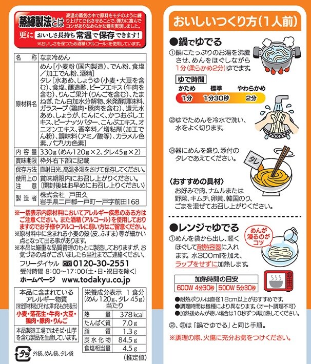 - 戸田久 いわて盛岡ビビン麺2食 ビビンたれ付 330g×5袋