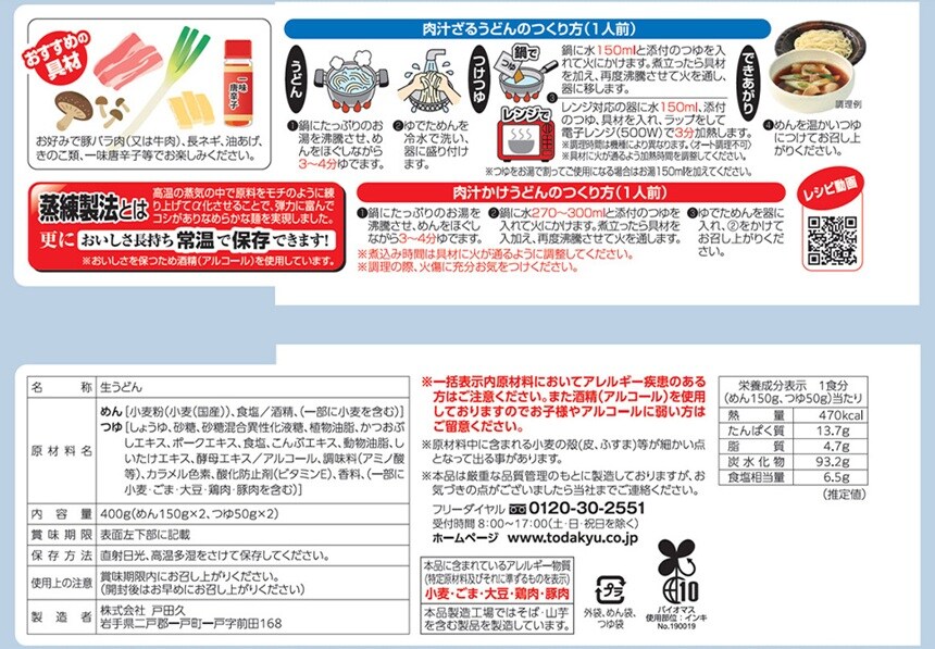 - 戸田久 北の肉汁うどん2人前 スープ付 400g×5袋