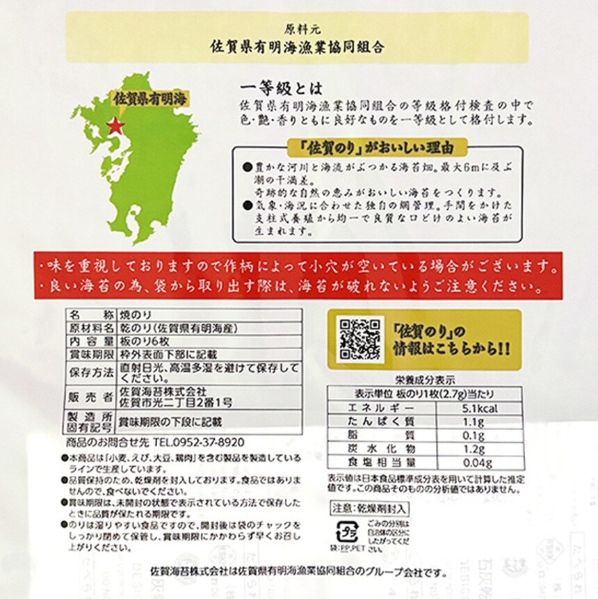 - 佐賀海苔 一等級佐賀有明海産焼のり 6枚×5袋