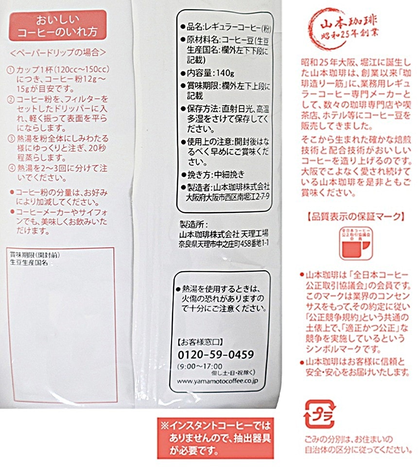 - 山本珈琲 クラシックモカブレンド 140g×3袋