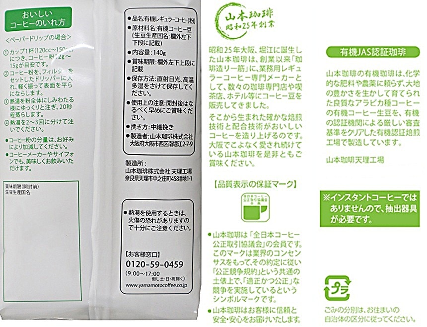 - 山本珈琲 クラシックオーガニックブレンド 140g×3袋