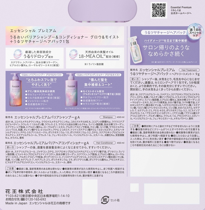 - エッセンシャル プレミアム バリアグロウ&モイストポンプセット 900ml+うるツヤチャージヘアパック9g