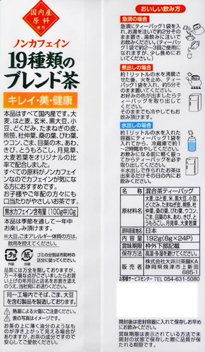 - 大井川茶園 ノンカフェイン19種類のブレンド茶 8gx24p×5個
