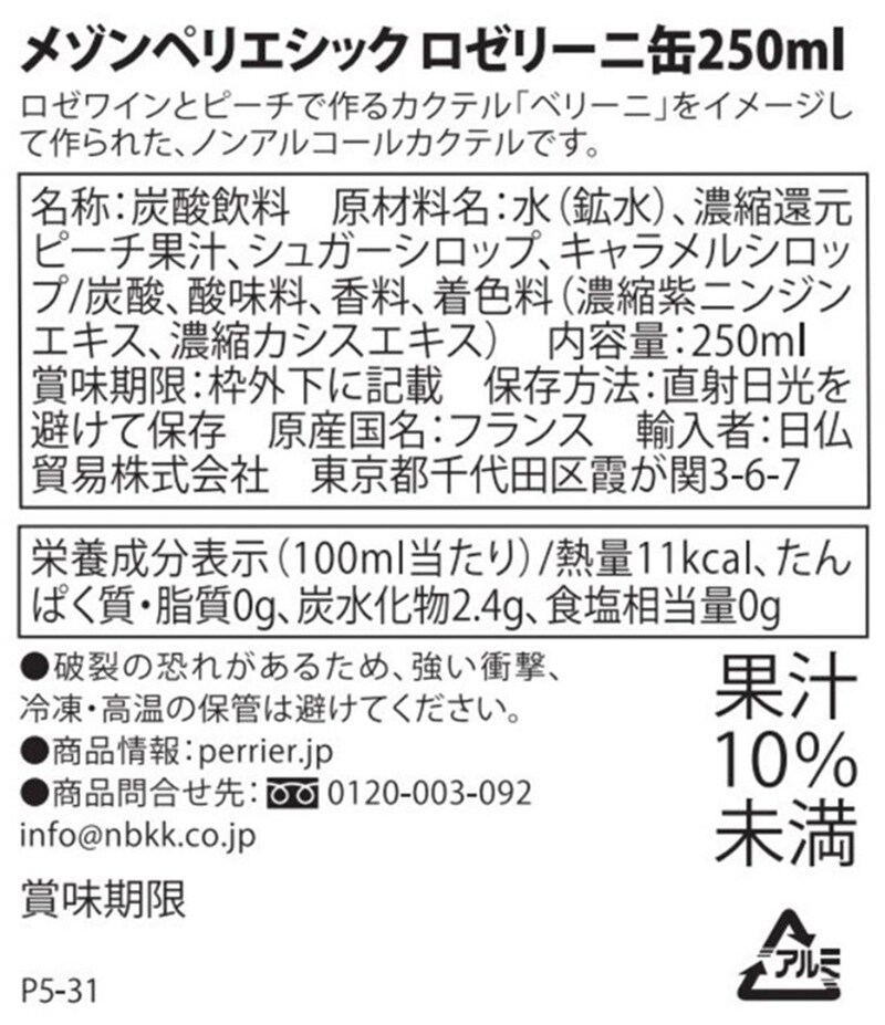 - メゾンペリエ シックロゼリーニ缶 250ml×24本