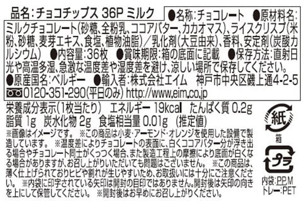 [6個]エイム チョコチップス 36P ミルク 36枚(125g) | 定番のミルクチョコレート