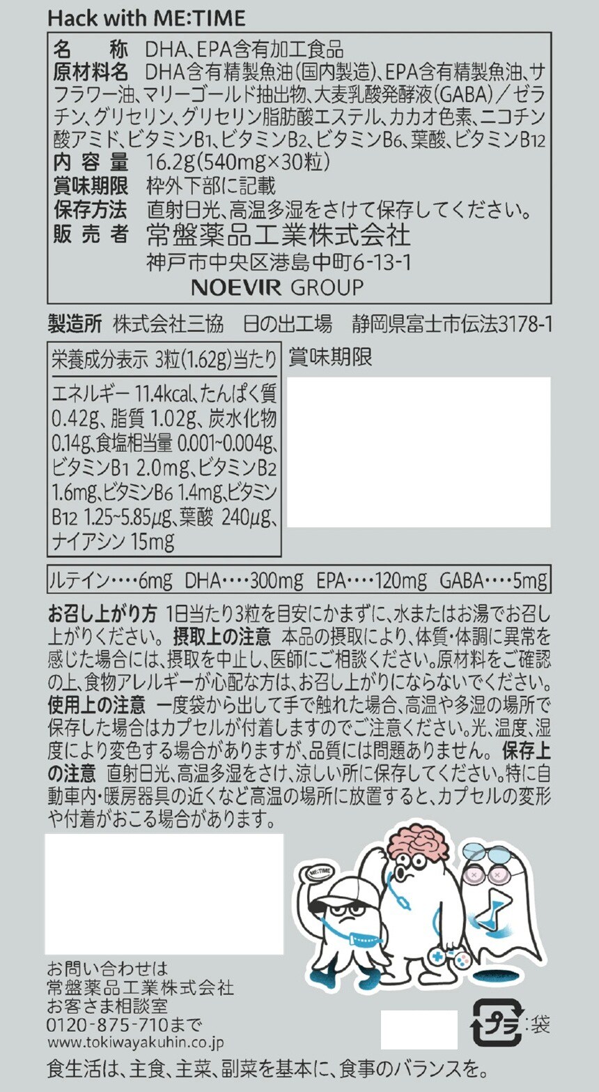 [2個]常盤薬品工業 Hack with ME:TIME 30粒入 | タイパを意識し効率を重視する方がパッと摂取できるDHA・EPA・ルテインなどを配合したサプリメント