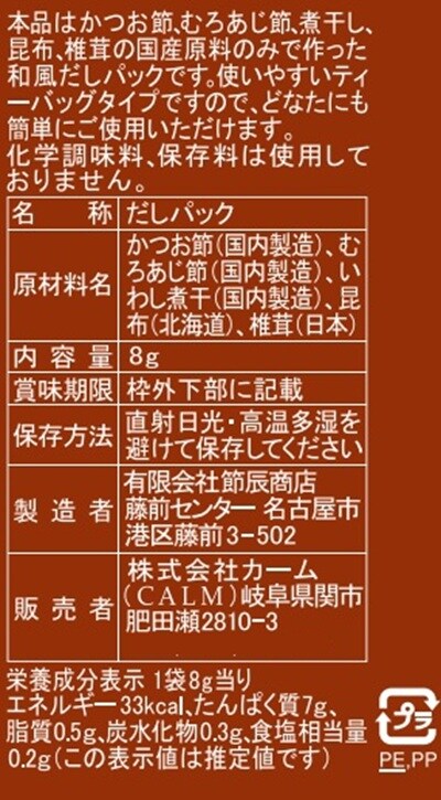 ・黄金割烹だしパック 8g×3袋 - 賞味期限