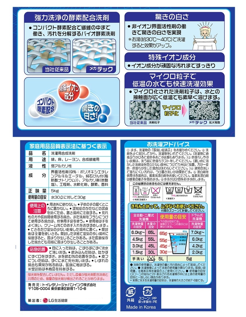 [3個]トイレタリージャパンインク メガテック 大型洗剤 5kg | 低温の水でもよく溶ける低温活性洗剤。蛍光剤は無配合。