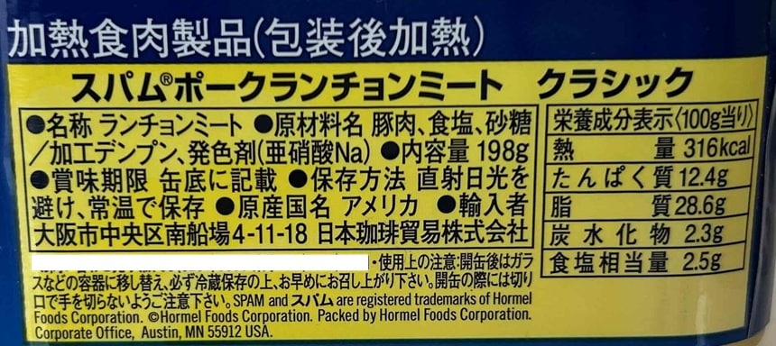 アメリカ生まれのプルトップ缶詰め入りのランチョンミートです。
