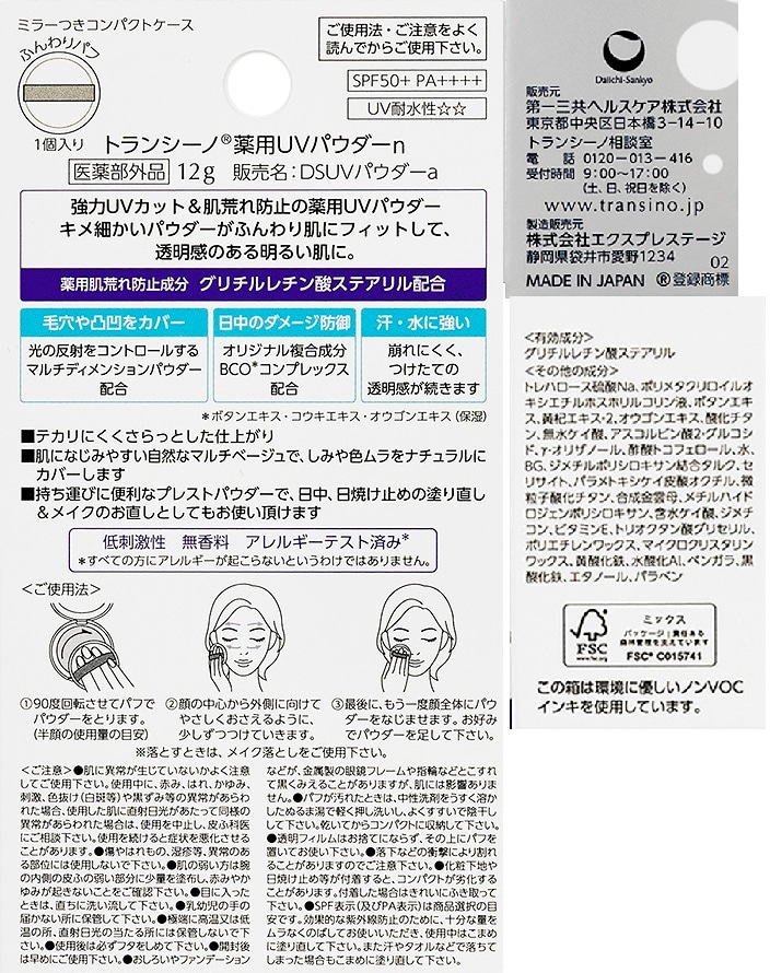 - https://www.daiichisankyo-hc.co.jp/products/details/transino_uv_powder/