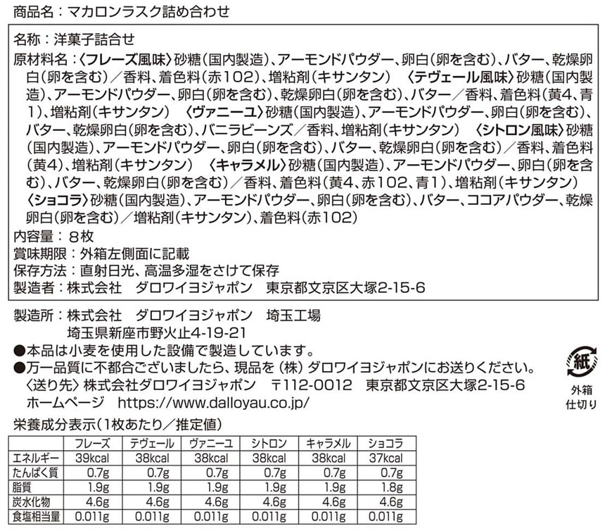 [2個]ダロワイヨ マカロンラスク 180g(8枚入) | ダロワイヨのカラフルなマカロンの生地を二度焼きしたラスク