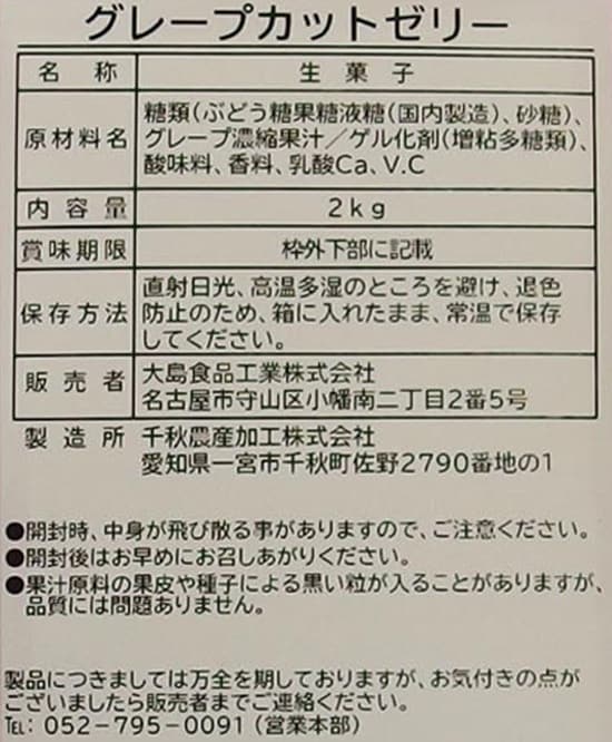 ・稀にゼリーの成分が溶けだし、シロップにとろみが生じる場合がありますが、品質には問題ありません。